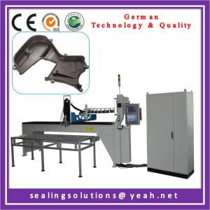 This machine can mix two (or three) kinds of raw material together and pour to pre-set position, groove, mould, or the flat surface of workpiece directly. Through chemical reaction, the liquid raw materials form elastic sealing strip in seconds. There is no joint or cut point, so comparing with other kind of sealing its effect is much better and with longer using life. And, during the forming process, the sealing strip surface become very smooth and without any crack, so its sealing effect is perfect. And, because it can stick on the workpiece naturally and tightly, no gluing worker is needed, huge cost is saved from labor and time, etc.
