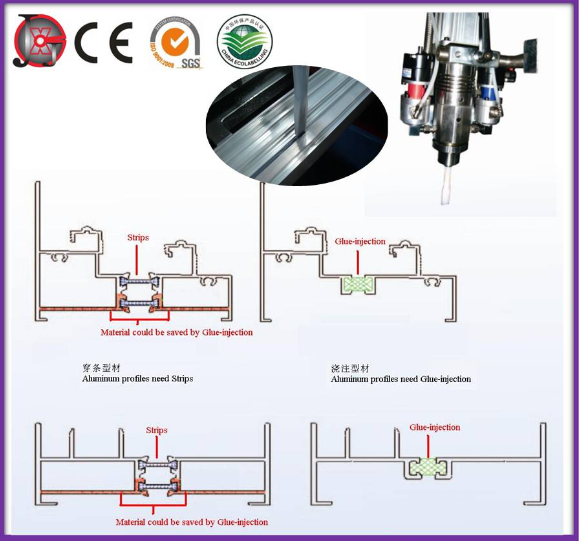 Hiqh quality aluminum profiles processing machine This equipment has two main functions: inject the raw materialinto the groove of aluminum profiles, when the material cured, cut off the bridge; Then, the aluminum profiles obtain the functions such as heat insulation, etc. (The raw material is thermal insulation material, the glue) Comparing with old aluminum profiles, the new one has wonderful heat insulation function, and much much stronger, especially could save a lot of cost. View More