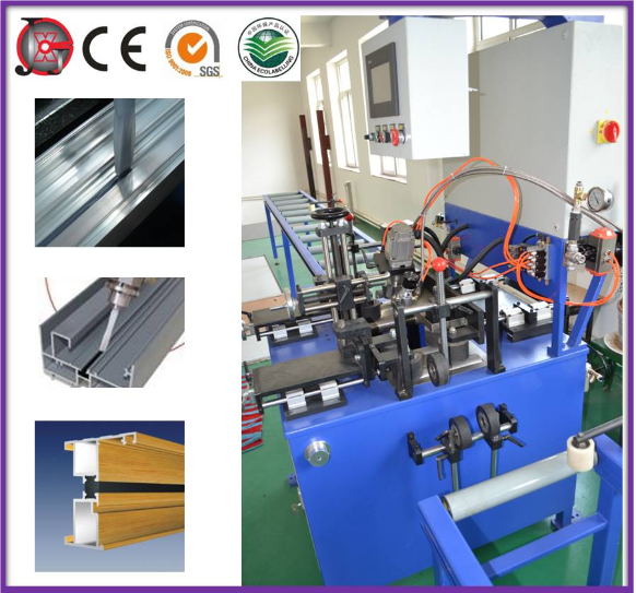 This equipment has two main functions: inject the raw materialinto the groove of aluminum profiles, when the material cured, cut off the bridge; Then, the aluminum profiles obtain the functions such as heat insulation, etc. (The raw material is thermal insulation material, the glue)